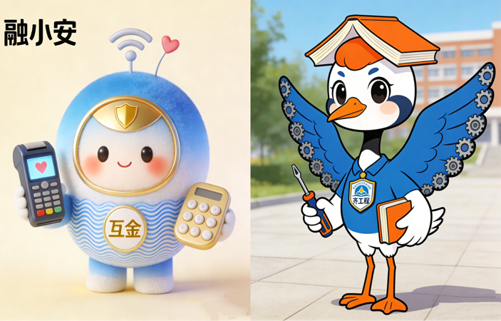 在AI帮助下,高雅设计出以丹顶鹤为原型的学校吉祥物“鹤小匠”,以及融合区块链与支付元素的专业吉祥物“信小付”,分别承载了地域工科气质与专业“技术构建信任”的核心价值。这一实践不仅是高雅对阅读与AI融合的探索,更展现了当代金融学子用人文视野锚定专业方向、用技术创意赋能文化表达的创新态度。