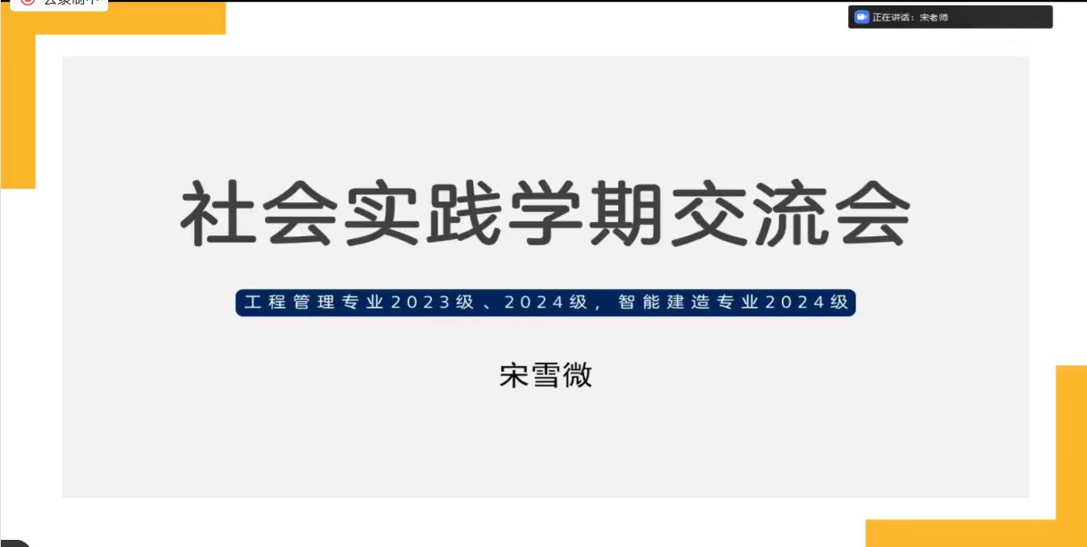 为扎实推进社会实践学期各项工作,及时梳理阶段成果、查摆问题并压实实践责任,2026年2月1日,土木与管理学院辅导员宋雪微老师主持召开社会实践学期交流会。工程管理专业2023级、2024级,智能建造专业2024级全体学生参会。