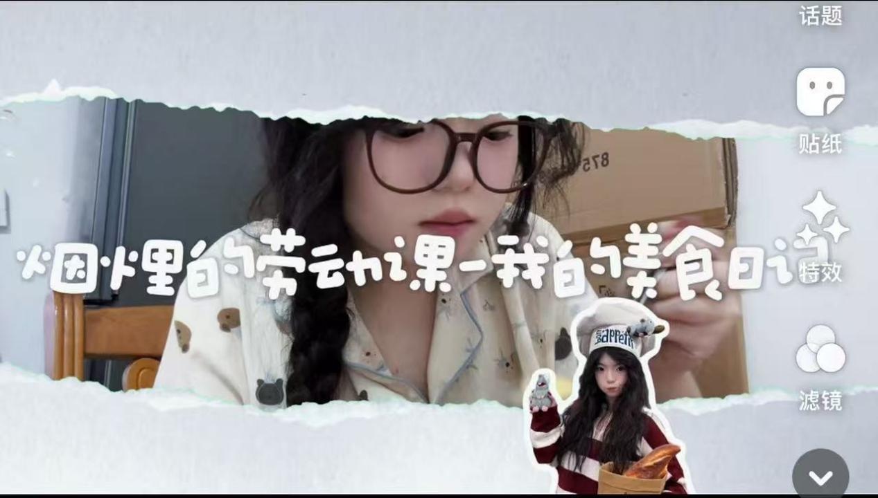 徐沛瑶同学的《寒假动起来・解锁我的元气运动》以八段锦、健美操为内容,镜头跟随她灵活切换的动作,展现出青春动感的活力。王美鑫同学的烤面包视频,从揉面到发酵再到烘烤,完整记录了面包膨胀上色的全过程,让香甜的麦香成为一场关于坚持与美好的修行。