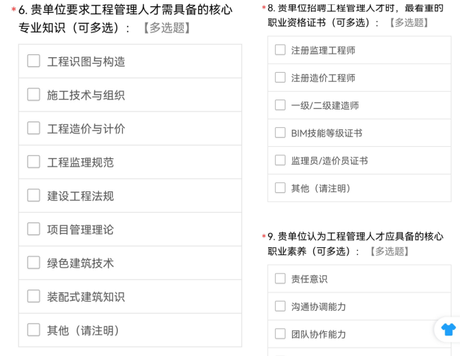 调研过程中,重点挖掘行业转型背景下工程管理人才的核心需求,提炼出“技术+管理”复合型人才培养导向。针对监理岗位,团队明确智慧监理平台操作、多方沟通协调能力已成为岗位必备技能;针对施工管理岗位,装配式施工工艺、绿色施工技术的掌握程度直接影响岗位适配性;针对造价咨询岗位,全过程造价管控与BIM造价软件应用能力成为核心竞争力。同时,团队还捕捉到BIM工程师、智慧工地管理师等新兴岗位的需求增长点,为专业学习与职业规划提供了清晰指引。