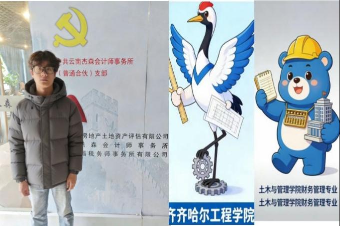 财管232班李林容阅读书籍后,完成吉祥物设计。学校吉祥物齐小匠以仙鹤为原型,寓意学子志存高远、开放翱翔;专业吉祥物财小管以金算盘为原型,诠释财务人合规守正、创值赋能的职业理念。