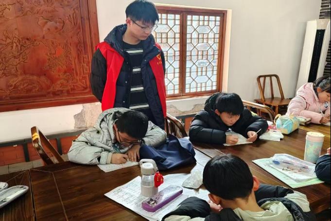 余俊杰在志愿服务期间,主动为托管班儿童提供暖心服务与课业辅导:先是在教室内协助孩子们完成假期作业,耐心讲解课业难题、梳理知识点;随后陪伴孩子们开展趣味课堂、手工创作与安全教育活动,丰富假期学习生活;还细心照看孩子们的日常活动,引导班级秩序,协助整理学习与活动物资,同时陪伴孩子阅读互动,用温暖与耐心守护孩子们的假期时光,用细致的服务为公益托管班助力添彩。