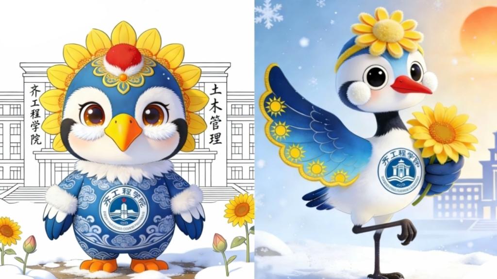 2026年2月12日互金251班方尚雅完成了齐齐哈尔工程学院“双系列”吉祥物设计方案,这组吉祥物以丹顶鹤与灵动水鸟为原型,融入向日葵等元素,勾勒出属于齐工程的精神图腾,生动诠释了其“中而至庸,和而不同”的校训精神。
