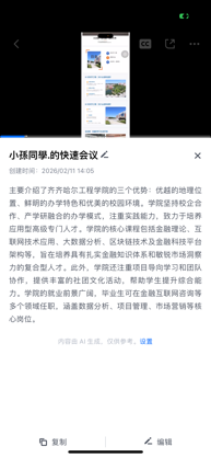 土木与管理学院互金231班孙悦于2026年2月13日在线上进行母校回访,以云端连线的方式搭建起高校与高中的沟通桥梁,让温暖与经验在网络中传递。