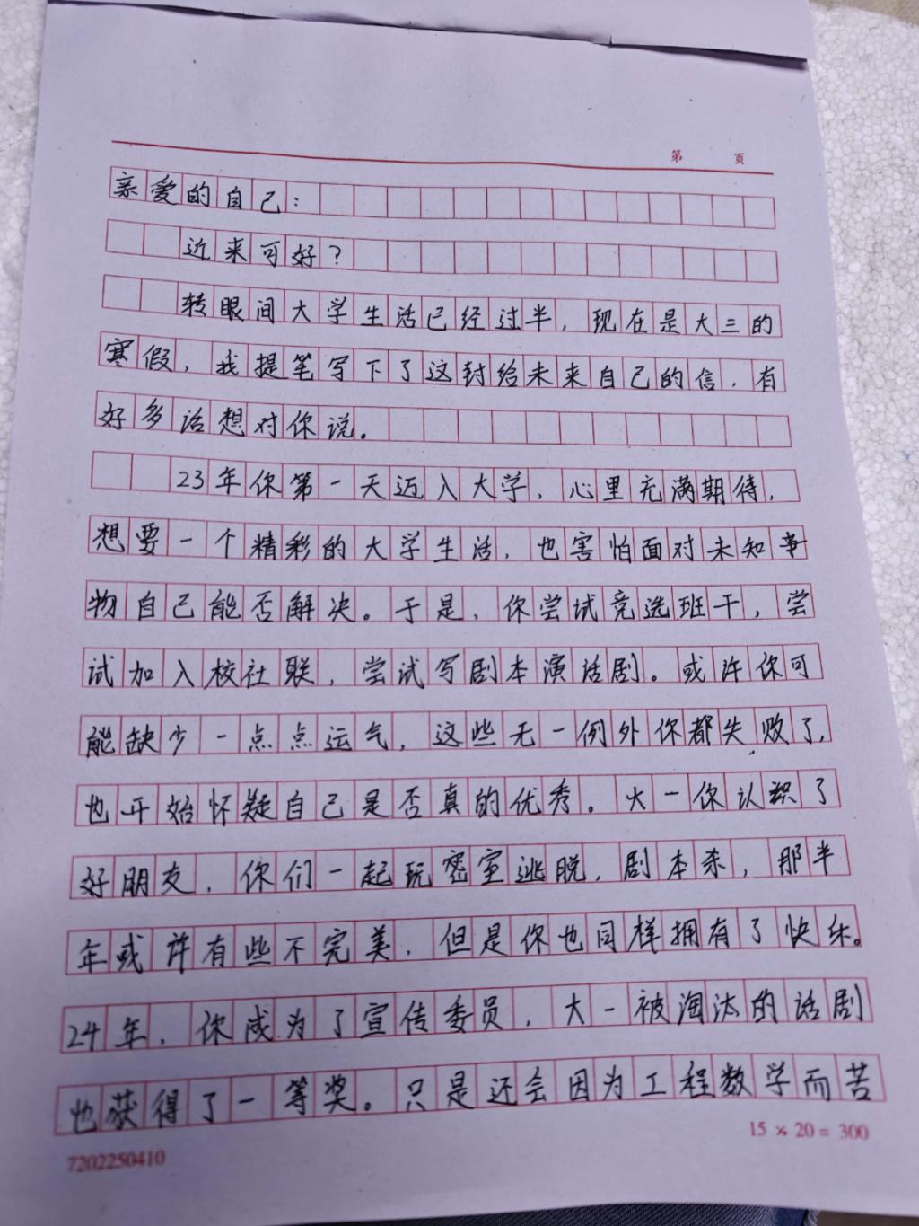 “写下这封信时,我才真正静心来,看清自己真正想要的是什么。”邢佳堃坦言,平日里被学业与琐事裹挟,很少认真思考未来的方向,而写信的过程,是一次与自我的深度对话,更是为迷茫的自己立下前行的坐标。写给未来的信,是一份自我提醒,也是一份精神寄托。