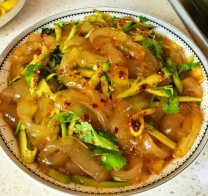 勾习圣认真准备食材,细心处理每一步,用专注与耐心完成一道清爽可口的凉菜。制作过程中,勾习圣先将拉皮泡发沥干,搭配黄瓜、胡萝卜切丝备用,再按比例调拌酱汁。从食材处理到调味拌匀,每一步都有条不紊。勾习圣在切配与搅拌中锻炼动手能力,在细节把控中体会烹饪的讲究,体会到一餐一饭皆来之不易。