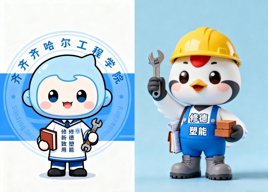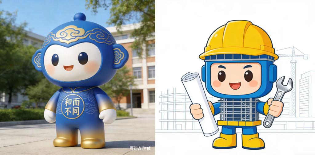 马丰阅读《梁思成中国建筑史》和《工程学奇观:看得见的建造世界》结合校训校规校园文化利用AI软件设计学校及专业吉祥物。
