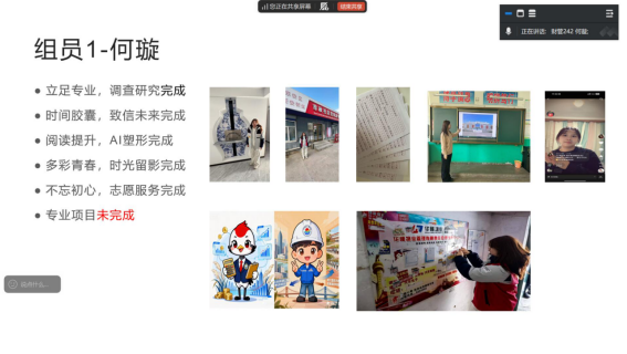 交流会上,参与上一阶段社会实践学期的同学通过抽签的方式随机进行汇报。贾雪小组详细介绍了上一阶段的实践内容以及实践进度,分享了社会实践中的收获、遇到的难题及解决思路,展现了当代大学生脚踏实地、勇于探索的精神风貌。其余各小组汇报结束后,同学们相互点评、各抒己见,在肯定他人实践亮点的同时,提出切实可行的优化建议,现场交流氛围浓厚。