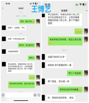 我们与老师交流最近的情况,为学弟学妹们介绍大学的校园生活、分享交流、提供经验。激励学弟学妹们努力学习,为以后的学习生活提供经验。