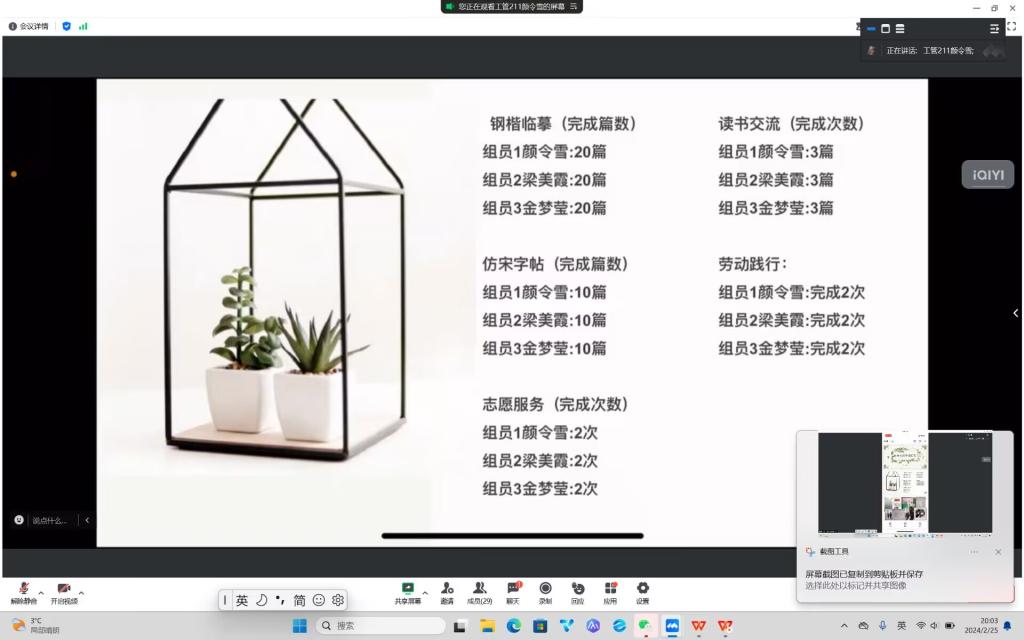 2月25日晚上八点,生涯导师李月凤、冯伟老师通过腾讯会议召开汇报会,各位生涯学生按时参会。