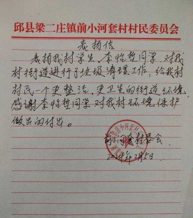 土木232李怡哲:李怡哲同学对农村街道进行了垃圾清理的环境保护志愿活动,给村民一个更整洁,更卫生的街道环境。通过亲手清理垃圾,让其深刻体会到环境问题的紧迫性,从而在日常生活中更加注重环保行为。同时,这一活动也让其更加了解农村的生活和环境状况,增进了对乡村的热爱和尊重。参与农村街道垃圾清理的环保志愿活动,不仅具有环保意义,更是一次难得的社会实践和成长机会。这样的活动应该得到更多的关注和支持,让更多的人参与到环保事业中来,共同守护我们的美丽家园