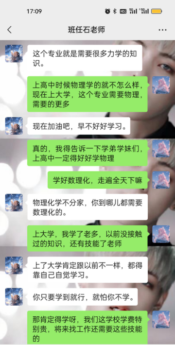 在与老师的交流中,冯越也发现了自己在求学、成长道路上的一些不足之处,石老师也给她很多意见和建议。这让她更加坚定了要不断进步、不断完善自己的信念。