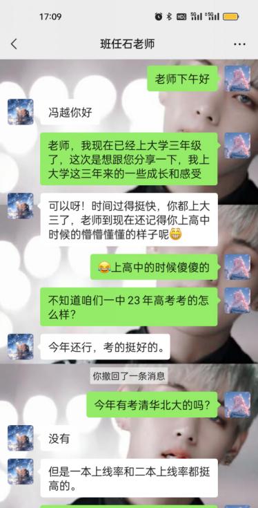 1月21日,土木211班冯越同学对母校东宁市第一中学的班主任石老师进行线上回访,和老师分享了上大学的经历、交流学习上的问题、把自己的经验分享给学弟学妹们。