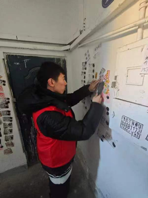 吕泱洋在哈尔滨市道里区安隆街道开展小区楼道清理粘贴广告卡片工作,该清理过程持续了一下午,在清理过程中,得到了居民的一致好评,他在志愿服务中也结交了许多志同道合的志愿者,在此次志愿服务中不但美化了居住环境同时也提升自己社交能力,这些经验和感悟对于成长和发展都有着重要的意义。