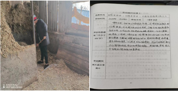 成员陈雷在1月29日,通过帮助父亲喂牛,完成居家劳动任务。陈雷同学说:“喂牛不仅能替父亲分担任务,也是一种劳动体验和感悟。在喂牛的过程中,他也深感这份任务的辛劳,家人通过这样的劳作改变生活现状。也坚定了他好好学习,通过他的努力改变家人生活的信念。”