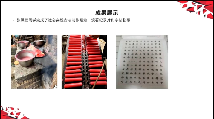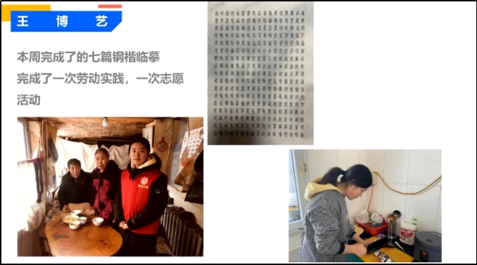 李盼盼、朱同威、国贺阳、李智慧、李微等教师介绍了学生的阶段性成果包括劳动践行和母校回访等活动及读书交流等,通过参加社会实践学期帮助学生更好地了解社会和自己的成长过程,同时也提高他们的实践能力和社会责任感。