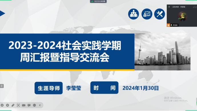 2024年1月30日晚,生涯导师李莹莹老师利用腾讯会议召开社会实践学期周汇报暨指导交流会。