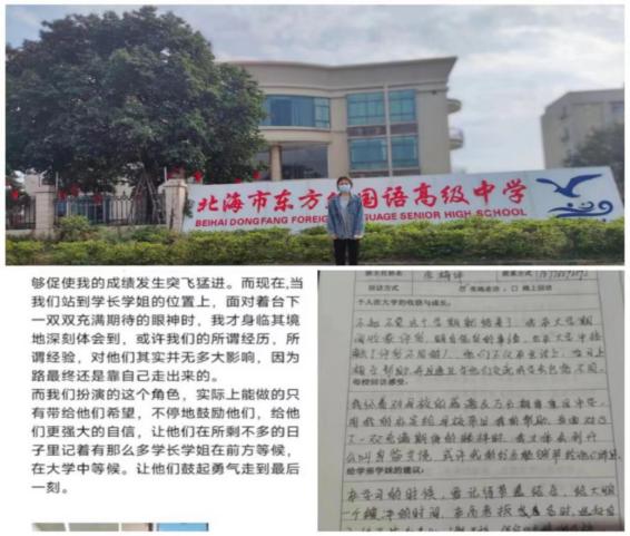 当扮演这个角色的时候,实际上能做的只有带给他们希望,并且不停地去鼓励他们,给他们更强大的自信,让他们在所剩不多的日子里记着有那么多学长学姐在前方等候,在大学中等候,让他们鼓起勇气走到最后一刻。