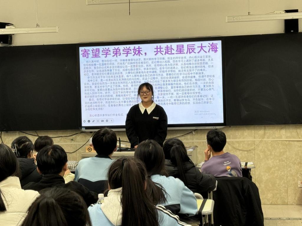 活动期间,陈璐同学热情洋溢地分享了自己丰富多彩的大学生活。从紧张有序的课程学习,到充满乐趣与挑战的社团活动,从与室友相处的点滴趣事,到独自克服困难的成长经历,从学校的优美环境到惠生的“免费餐制度”,每一个故事都深深吸引着台下的学弟学妹,让他们对大学生活充满向往。