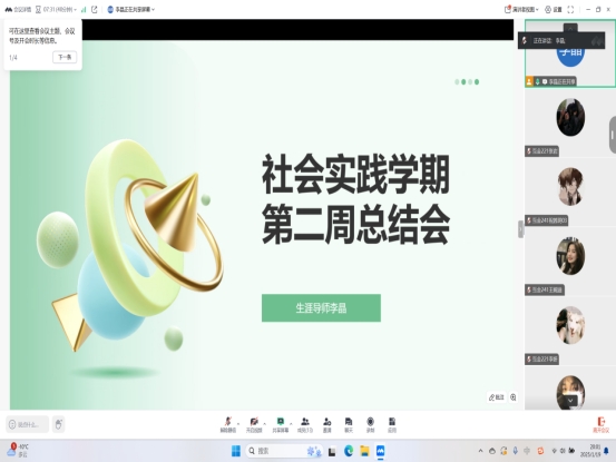 通过此次线上指导会,学生不仅对自己的社会实践项目有了更为深刻的认识与反思,也在生涯导师的指导和学生的交流中获取了丰富的知识与宝贵的经验,进一步明晰了自身在社会实践中的努力方向与发展重点,为顺利完成社会实践任务、实现个人成长与职业发展目标注入了强大动力与坚定信心。