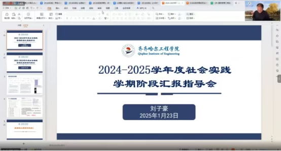 为进一步做好2024-2025学年度社会实践学期工作,加强过程指导,发现问题、解决当前社会实践阶段问题,辅导员刘子豪于1月23日14:00通过线上方式召开社会实践学期阶段汇报暨生涯导师指导会,土木22级与专升本24级小组长和生涯导师参会。