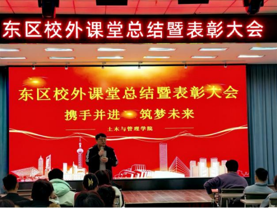 12月9日下午,土木与管理学院东区校外课堂总结暨表彰大会在学校二号教学区2508教室顺利召开。土木与管理学院党委书记、院长徐明,教学副院长于骁晗,产业副院长贺全德,东区校外课堂指导教师、获奖学生及学生代表共同参与本次大会。