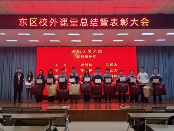 表彰环节,杨振宣读表彰决定,公布“亮剑精神奖”“优秀学员奖”“最大进步奖”三大奖项获奖名单。颁奖仪式分批次进行,于骁晗为12名“亮剑精神奖”获得者颁奖,工程管理专业教师王梓玮为7名“优秀学员奖”获得者颁奖,土木工程专业助理徐喜辉为10名“最大进步奖”获得者颁奖,现场掌声不断。
