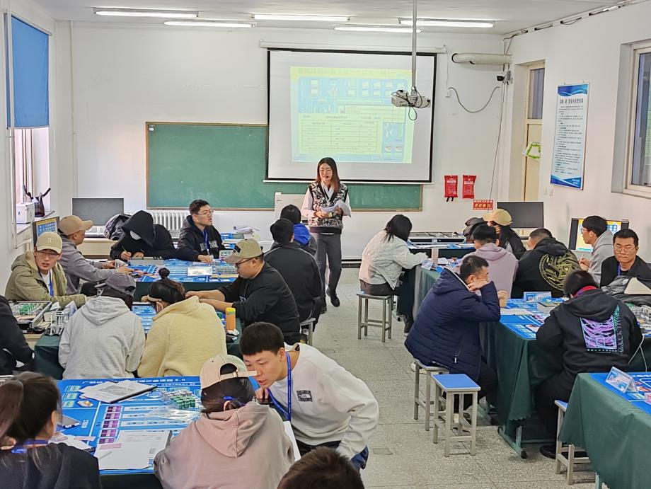 学生们在校外课堂学习到实践项目管理所需的知识技能后,接下来在3教3209沙盘实验室利用沙盘教具进行实战模拟,流程推演和优化的过程中能够培养学生们的团队协作和沟通能力,通过思考、分析和实践,进而增强了批判性思维、创新思维和解决问题的能力。