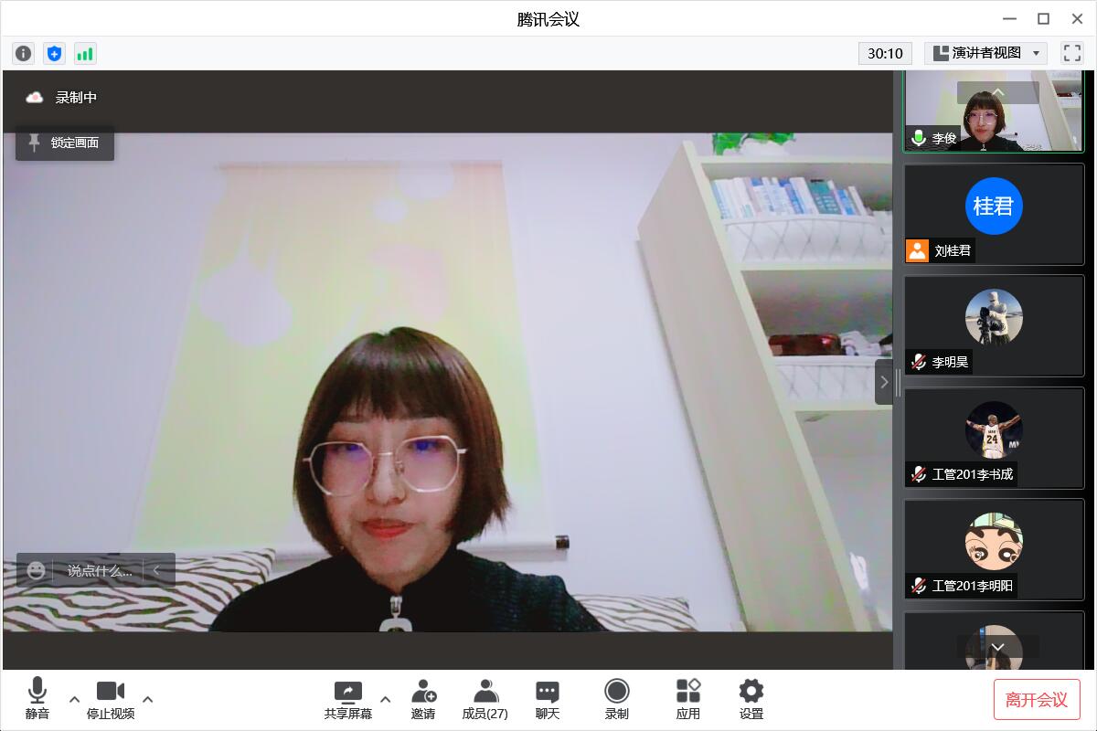 2022年4月26日19:00,李俊老师作为生涯导师为学生进行创新创业训练计划培训指导。本次会议室通过腾讯会议采用线上的形式进行,对象为工管20级、21级所指导的学生。本次会议是依托学校组织的创新创业训练计划项目申报活动,李俊老师所带学生共申报5组,共包含13人。