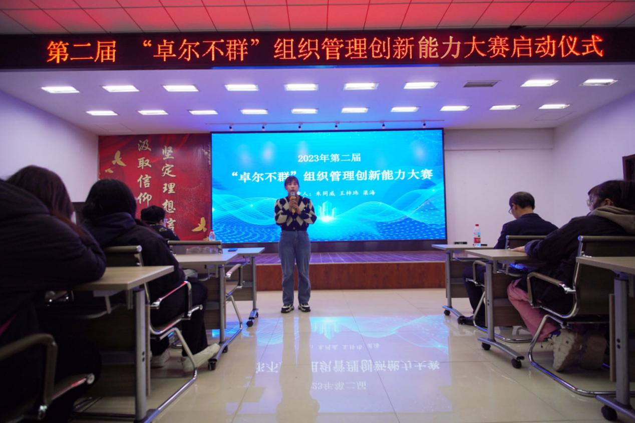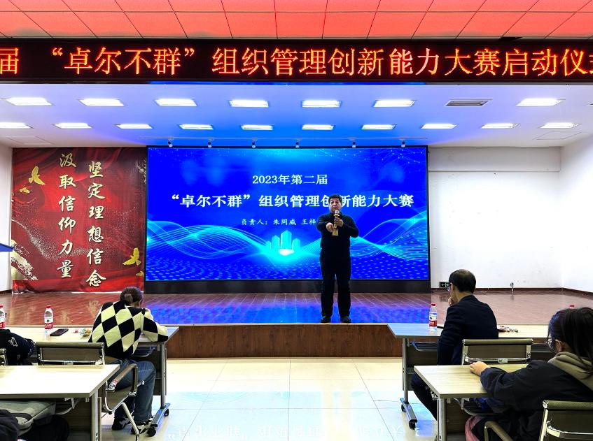 11月17日,2023年第二届“卓尔不群”组织管理创新能力大赛启动仪式在二号教学区2508室举行。本次大赛由陈思楚同学主持仪式,党总支书记、副主任徐明、土木工程专业长钟美慧、工程管理专业教师梁海、朱同威及全体参赛人员共300余人参加。举办此次大赛旨在提高学生的创新精神和创新创业能力,激发同学们的创新创业精神和提升组织管理能力。