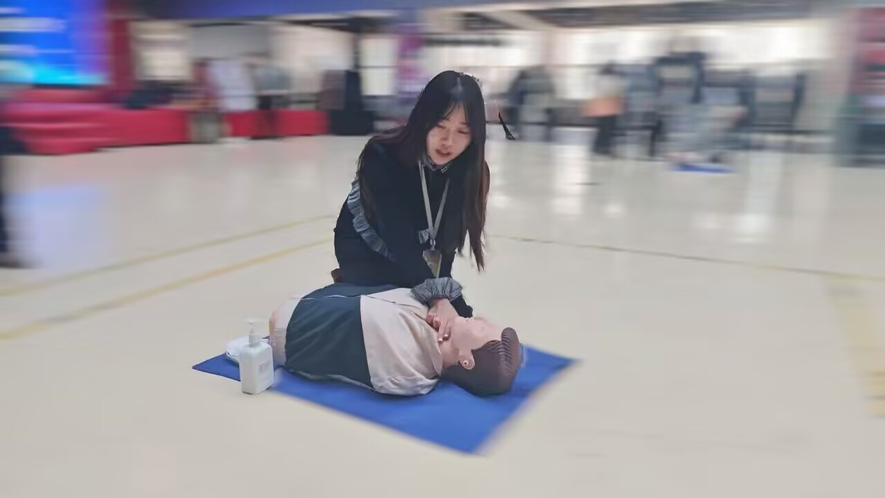 演练现场,专业人员详细讲解心肺复苏操作要点,如胸外按压的位置、频率、深度,以及人工呼吸的正确方法。师生们认真聆听,随后积极上手实操练习,在指导下逐渐掌握规范动作。