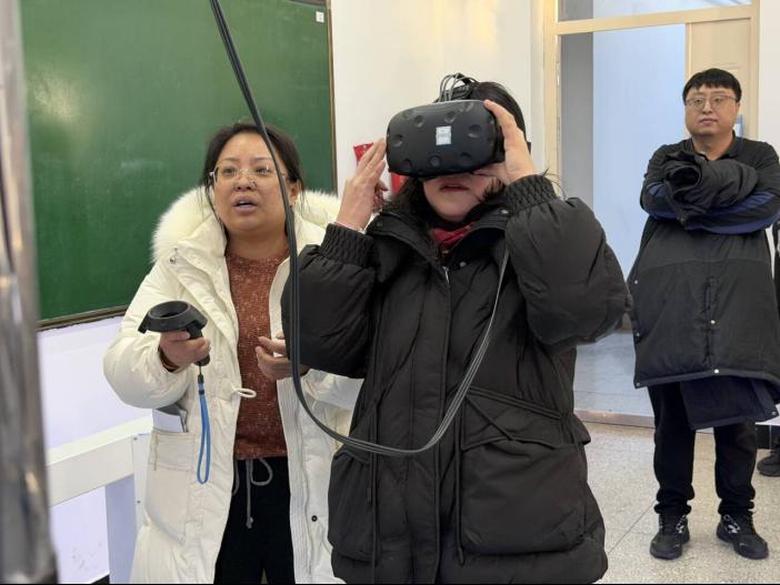 校领导一行先后深入各实验室核心区域,通过实地察看、现场询问等方式,详细了解实验室的设备运行、安全管理及场地规划等情况。在实验操作区,领导们驻足查看了关键仪器设备的使用维护状况,还饶有兴致地体验了装配式建筑VR教学设备;在安全管控区域,重点检查了消防设施配备、用电用气安全等落实情况,指出了部分区域存在的细节隐患。