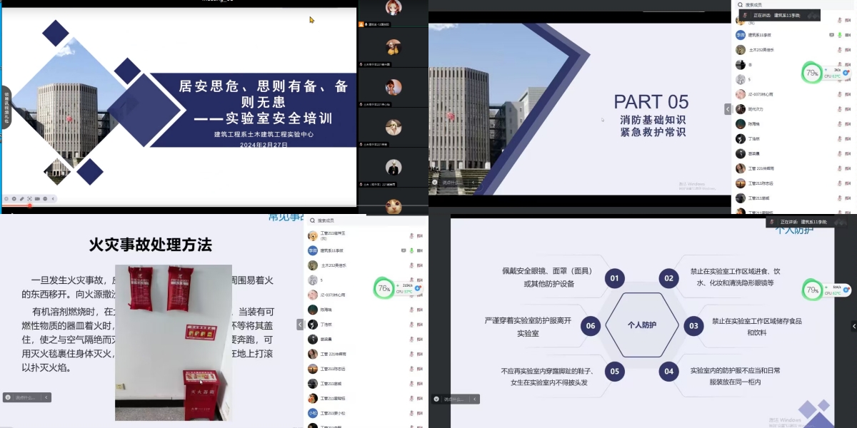 为进一步落实实验室安全准入制度,做好实验室安全教育工作,增强实验室安全防范意识,2024年2月27日,建筑工程系土木建筑工程实验中心实验技术人员李盼盼、李微、国贺阳、李智慧老师对建筑工程系全体学生开展了实验室安全教育活动。主要针对实验室仪器设备借用、仪器使用注意事项、发生火灾、人身伤害事故的应急处理等内容进行安全教育,旨在消除学生在实验时的侥幸心理、麻痹心理、走捷径心理等不良意识,促使学生重视实验室安全,养成敬畏安全之心。