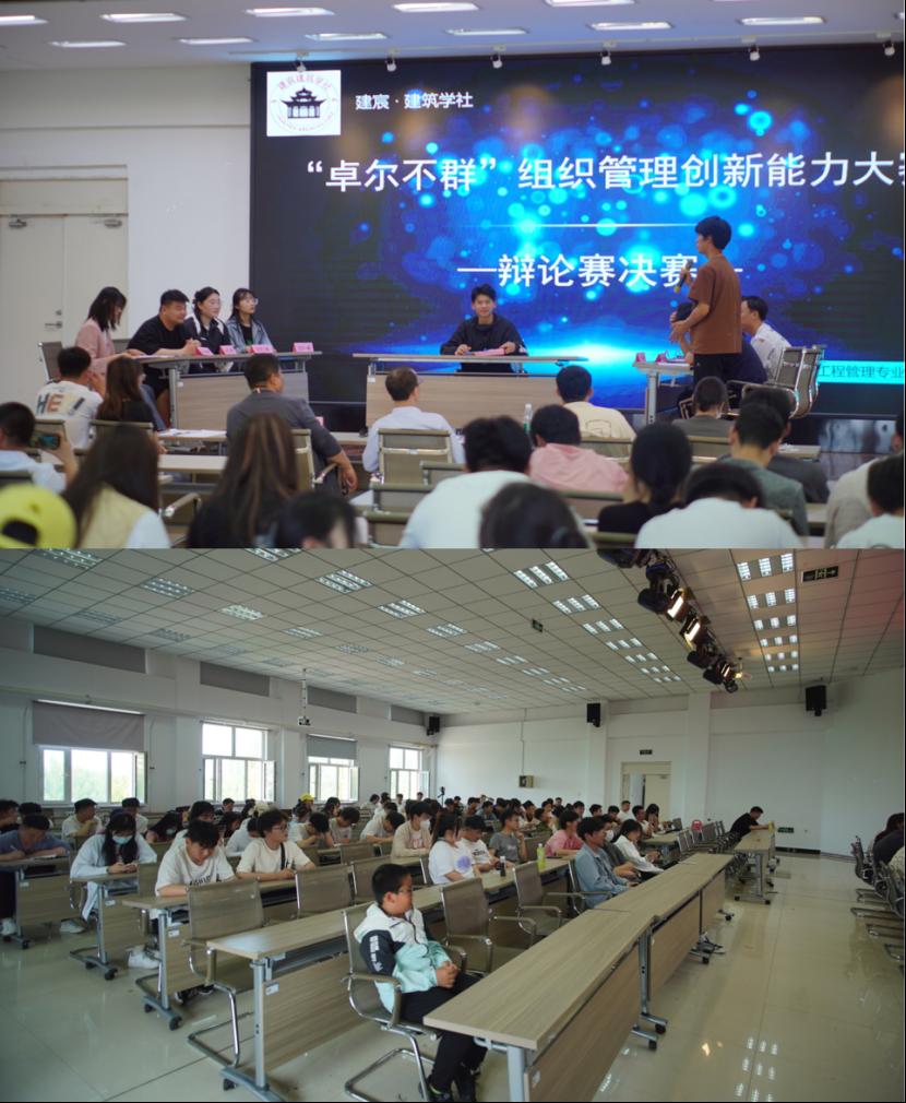 为了丰富我校学生的课余生活,并为学生提供一个展示自我风范的舞台,提高同学语言组织表达能力和逻辑思维能力,加强同学们的思考与辩论的能力,建宸建筑学社于2023年5月27日下午1点半2#2508举办“卓尔不群”组织管理创新能力大赛-辩论赛决赛,本次大赛由建宸建筑学社社长王恒主持,专业教师朱同威老师,梁海老师担任此次辩论赛的评委。