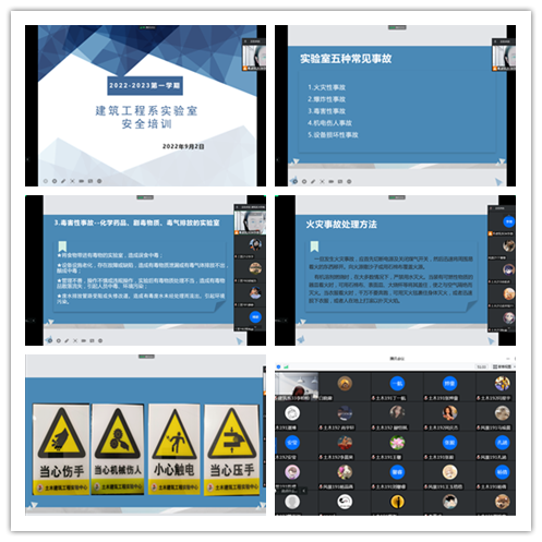 为进一步开展实验室安全教育工作,加强实验室安全管理,确保实验室成为安全的学习、科研场所,建筑工程系土木建筑工程实验中心于9月2日上午线上举行实验室安全专题培训,实验中心实验技术人员李盼盼、李微、国贺阳为培训人,建筑系全体学生参加此次培训。培训内容包括法实验室消防安全、废弃物处置安全、个人安全防护、常见事故处理与急救等。