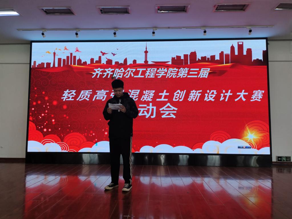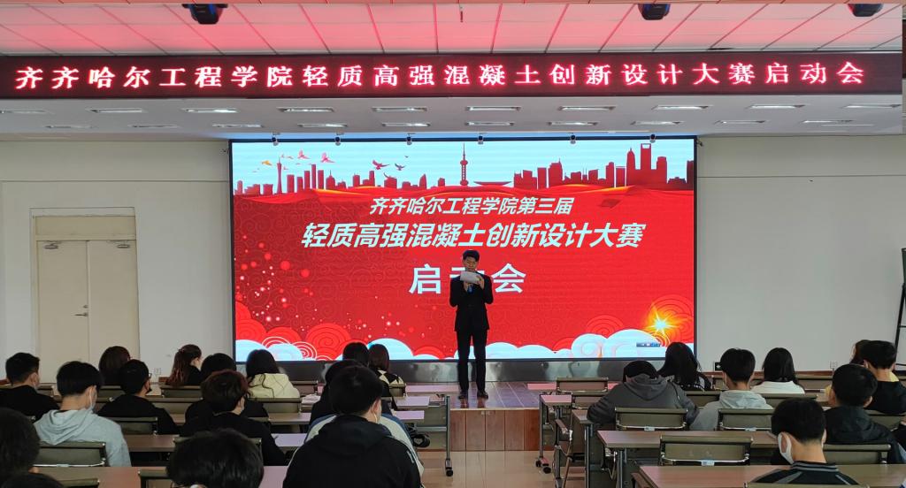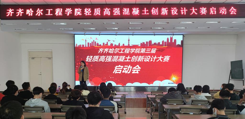 为加强课程实践教学环节,推动混凝土材料设计的创新,检验学生对混凝土材料和建材检测技术的熟练程度,建筑工程系于5月4日在二号教学区2508室举办轻质高强混凝土创新设计大赛(以下简称“大赛”)启动仪式,建筑工程系教学副主任徐明老师、实验中心主任李盼盼老师、工程管理专业负责人曲梦露老师、工程管理专业教师李俊老师和郝丽娜老师参加,建宸建筑学社全体成员及各系各级参赛学生共计120余人参会。
