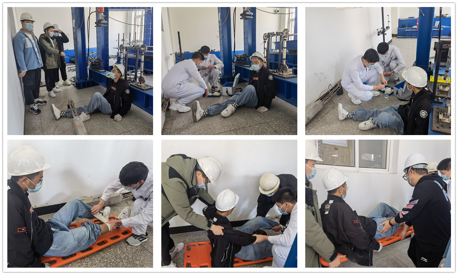 为使广大师生能够有效应对突发性的实验室安全事故,提高实验室安全事故的应急反应能力和处置水平,4月15日下午14:00,建筑工程系策划,与健康与护理系于三号教学区结构力学实验室联合开展了实验室安全应急演练。建筑工程系实验技术人员李盼盼、李微、国贺阳、健康与护理系实验中心主任张晓波、校卫生所信萍医生以及两位技能学长、土木工程专业10多名学生参加演练。