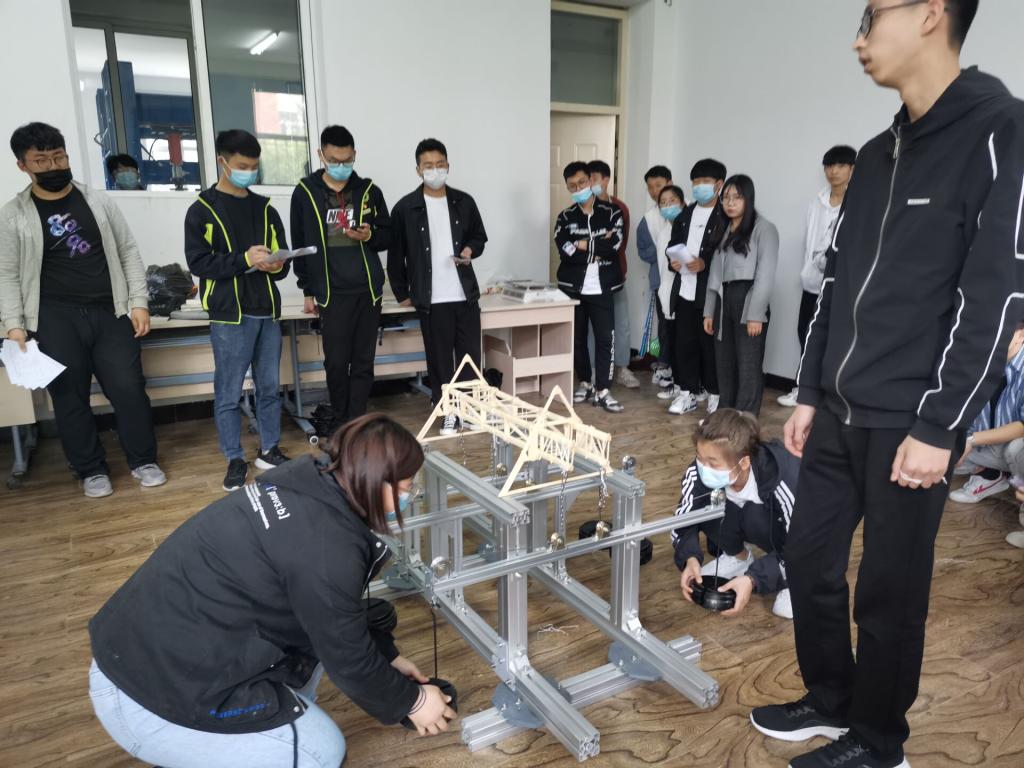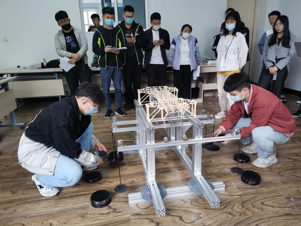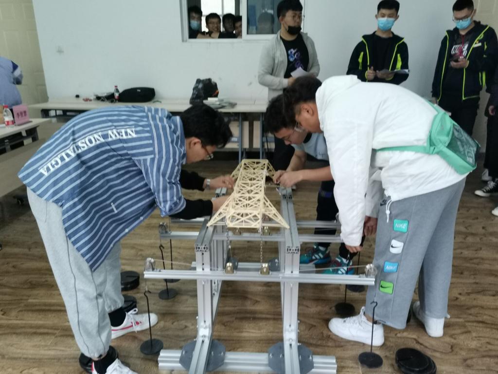 本次大赛的题目是桥梁结构模型设计与制作,竞赛内容包括桥梁结构模型设计、制作以及现场加载试验。比赛现场,参赛队员对桥梁模型的设计方案进行介绍,现场评委根据介绍提出专业性的问题和指导意见,随后对桥梁模型进行加载测试。活动现场气氛十分热烈,随着加载重量的不断增加,参赛队员们的心情也随之紧绷,当桥梁模型承受住一次又一次的荷载,现场观众都不禁拍手赞叹。