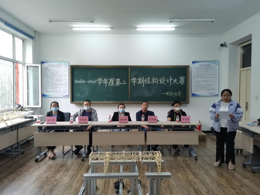 6月3日,齐齐哈尔工程学院2020-2021学年度第二学期结构设计大赛在3#1108举行决赛以及闭幕式。建筑工程系工程管理专业负责人曲梦露、专业老师李俊、土木工程专业老师贺全德、实验室指导教师李智慧、机电工程系李春波老师以及赵凤伟老师出席本次活动。大赛由建筑工程系团总支副书记赵晶晶主持。