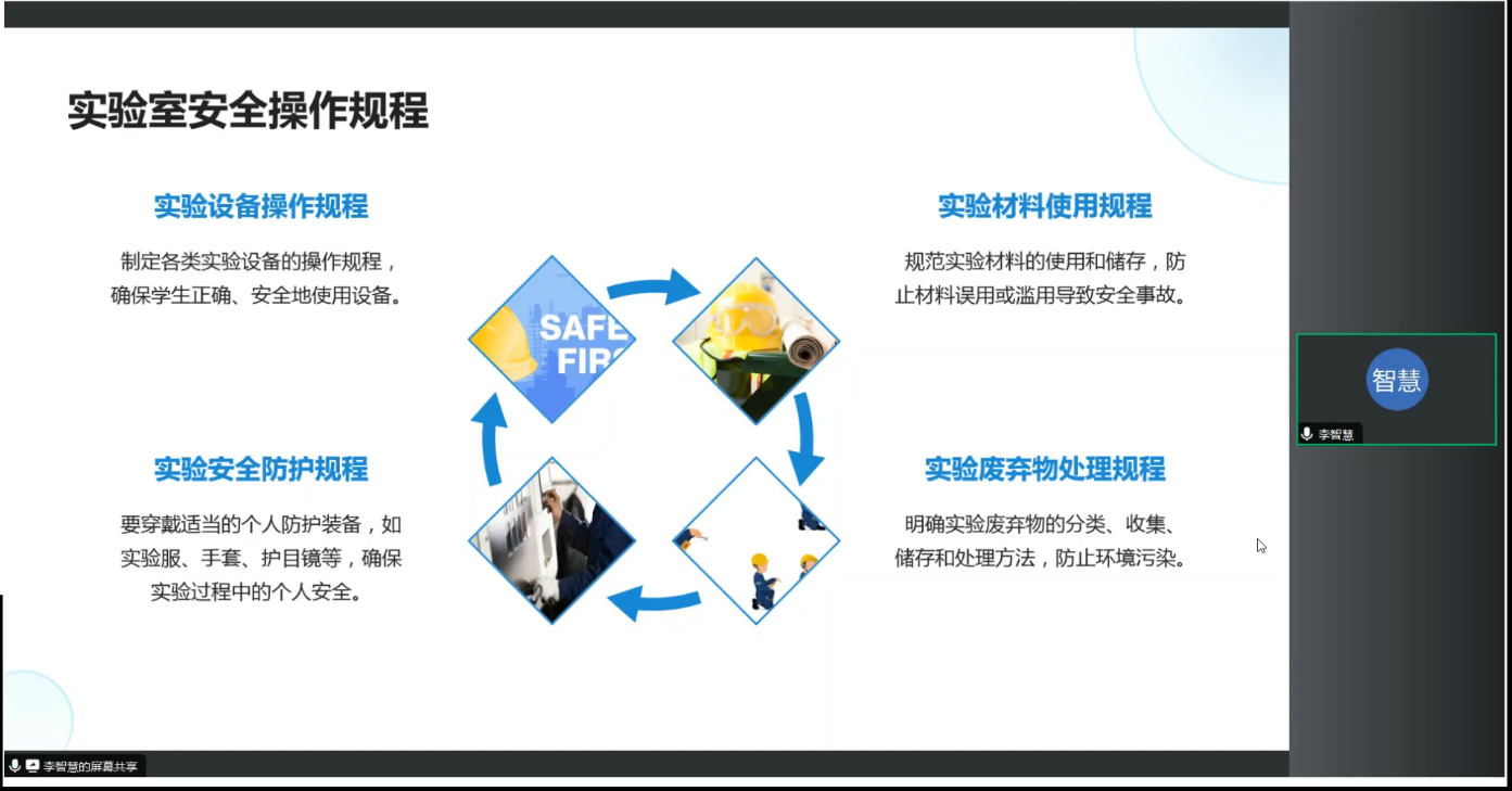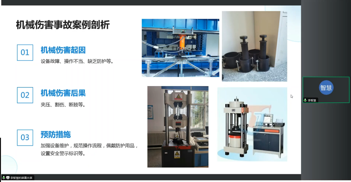 土木建筑工程实验中心的李智慧老师首先向学生们强调了实验室安全的重要性。她指出,实验室是进行教学和科研的重要场所,但同时也存在着一定的安全风险。只有严格遵守实验室安全规定,才能有效避免安全事故的发生。接着,李智慧老师介绍了目前土木建筑工程实验中心下辖的14个实验室,并分别介绍了实验室的各项安全制度和操作规程。包括实验室的准入制度、仪器设备的正确使用方法等。同时,还通过实际案例分析,让学生们深刻认识到违反实验室安全规定的严重后果。