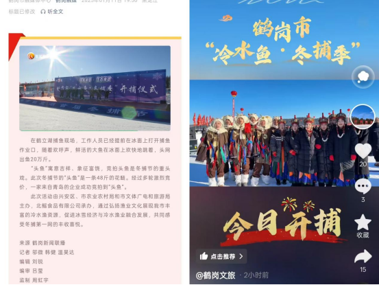 为积极响应学校号召,风景221班张恒参演了鹤岗市“千年渔猎生态渔业”首届冬捕节盛大启幕式,在开幕式进行舞蹈表演,发扬志愿精神,传播冰雪文化。