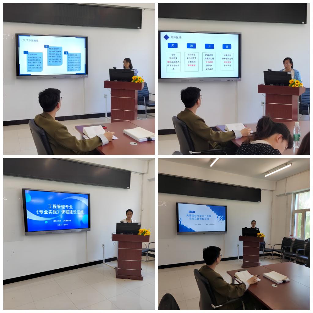 本次活动按照土木工程、工程管理、风景园林顺序进行说课,各专业教师汇报如何落实专业要求、完善成果保障措施、做好分散实习管理,以及运用数字化技术进行课程管理。指导教师、生涯导师共同完善思政典型案例,发掘典型人物,提供相关课程的思政案例素材。通过检查实习日志、每周汇报,对学生独立解决的问题、完成的工作任务进行提炼。