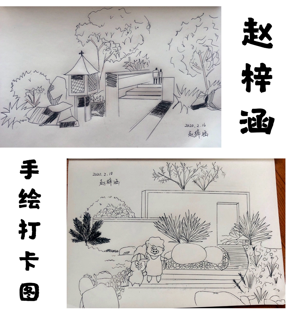疫情当前,防控重于泰山,学习也不能放松。建筑工程系风景园林专业坚持疫情期间“停课不停学”,通过网络组织教学活动,要求学生在家进行手绘效果图练习。
