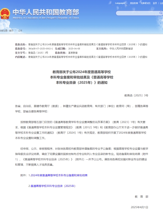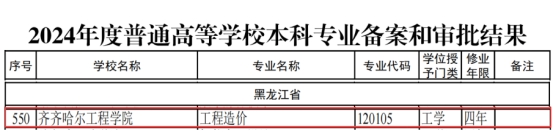 近日,教育部发布了《教育部关于公布2024年普通高等学校本科专业备案和审批结果及〈普通高等学校本科专业目录(2025)〉的通知》(高教函〔2025〕3号),我校申报的工程造价专业成功获批,并列入学校2025年招生计划。