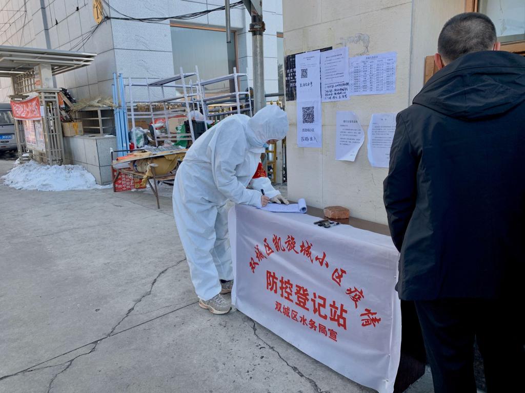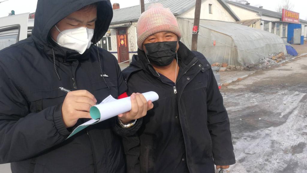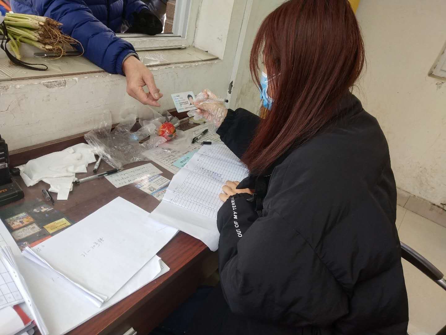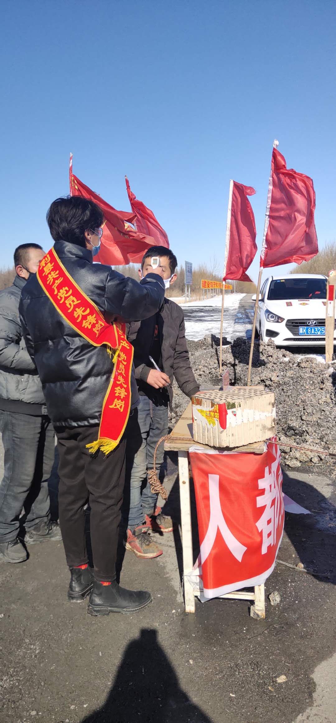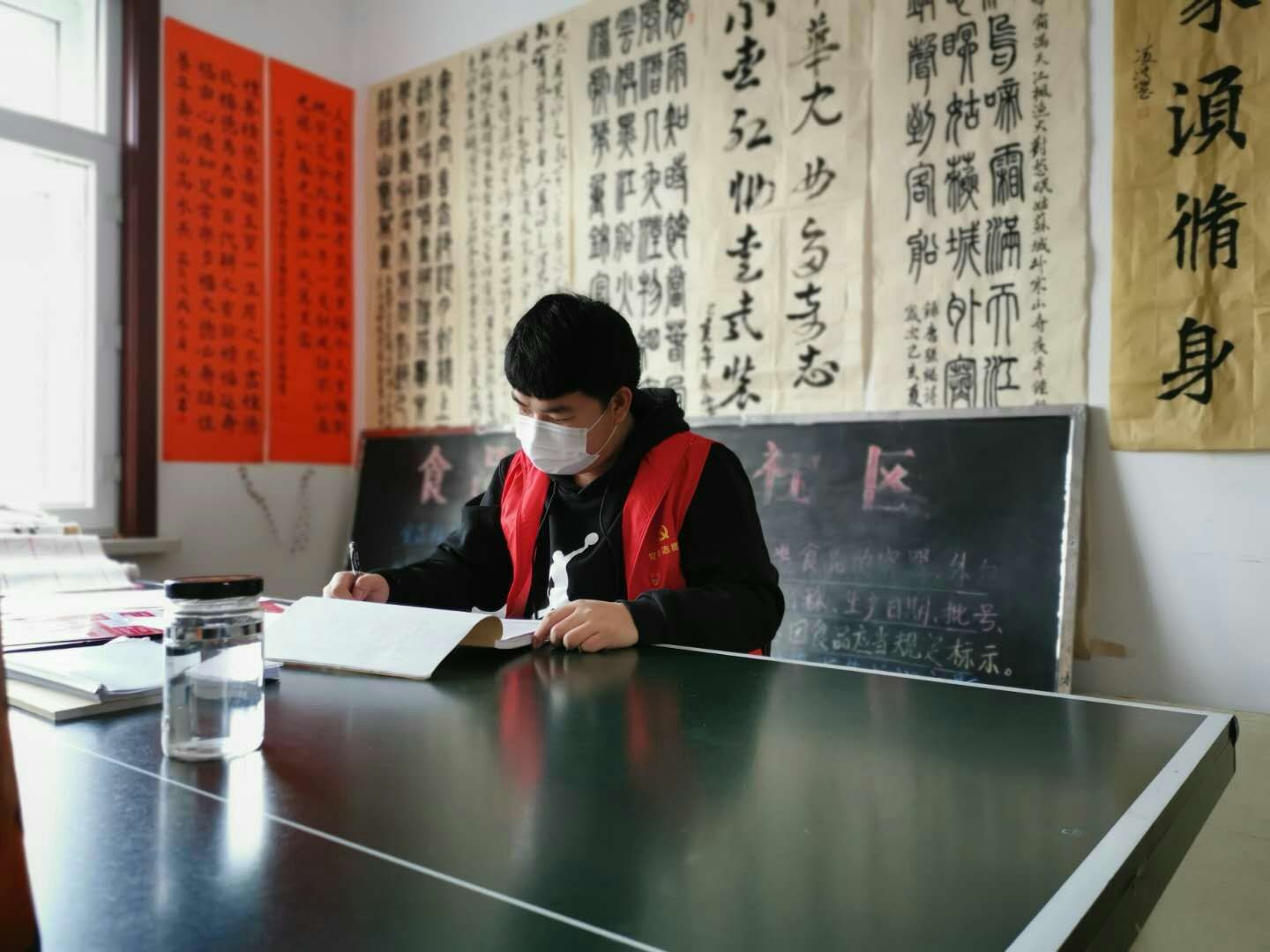 土木191班共青团员耿闯在哈尔滨市双城区做疫情防控志愿者,主要工作是进行来往人员登记。