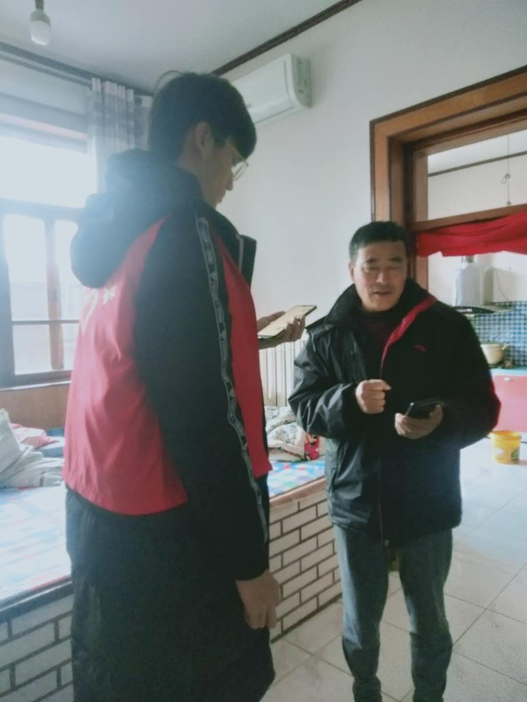 工管192班共青团员李广智在河北省黄骅市吕桥镇陈庄子村做疫情防控志愿者,主要工作是走访登记入户,并进行疫情排查。