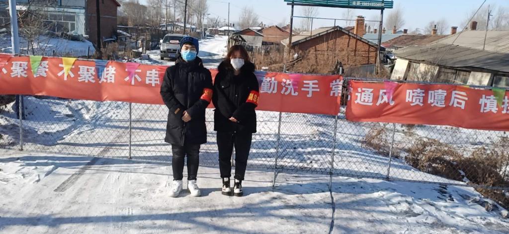 土木193班共青团员刘佳铭在黑龙江省伊春市铁力市桃山镇做疫情防控志愿者,主要工作是在室外卡点值班,管控居民出入。