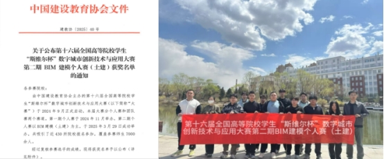 由中国建设教育协会主办、深圳市斯维尔科技股份有限公司承办的第十六届全国高等院校学生“斯维尔杯”数字城市创新技术与应用大赛第二期BIM建模个人赛(土建),近日公布了获奖名单。我校建筑管理工程系的学子们,凭借其扎实的专业知识和实践技能,在众多参赛者中脱颖而出,为我校斩获佳绩。其中土木工程专业张文泽、王婷玮、朱长宇、徐董兴,以及工程管理专业陈志远五位同学荣获一等奖;土木工程专业单柏钧、莘金铎、庞贵升,工程管理专业王浩丞、魏宏齐、陈思义、谢婧,智能建造专业邱胜杭八位同学荣获三等奖。
