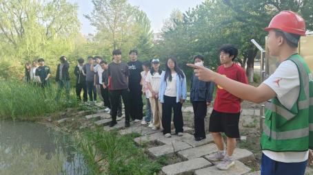 实践学习在学校韶园内围绕芦荡柳林温泉湿地的形成,环境的影响等内容由土木与管理学院校外课堂“行知班”学员主讲。