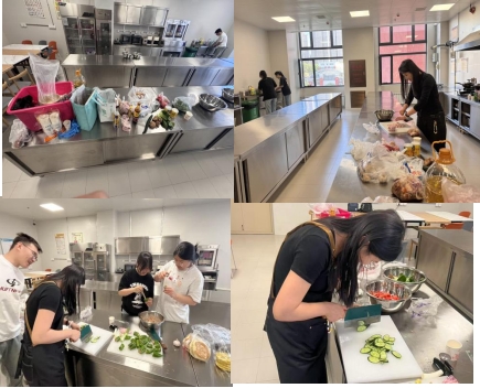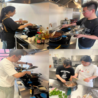 走进共享厨房,眼前是一派热火朝天的忙碌景象。案板上整齐摆放着新鲜的食材,青椒、番茄、排骨、鸡翅……五彩斑斓的色彩仿佛也在诉说着对毕业生们的美好祝愿。辅导员们挽起袖子,手把手地教学生们切菜、调味,学生们则全神贯注地学习,眼神中满是认真与期待。大家分工协作,有人洗菜切菜,有人掌勺翻炒,有人摆盘传菜,每一个步骤都饱含着对学长学姐的深情厚谊。